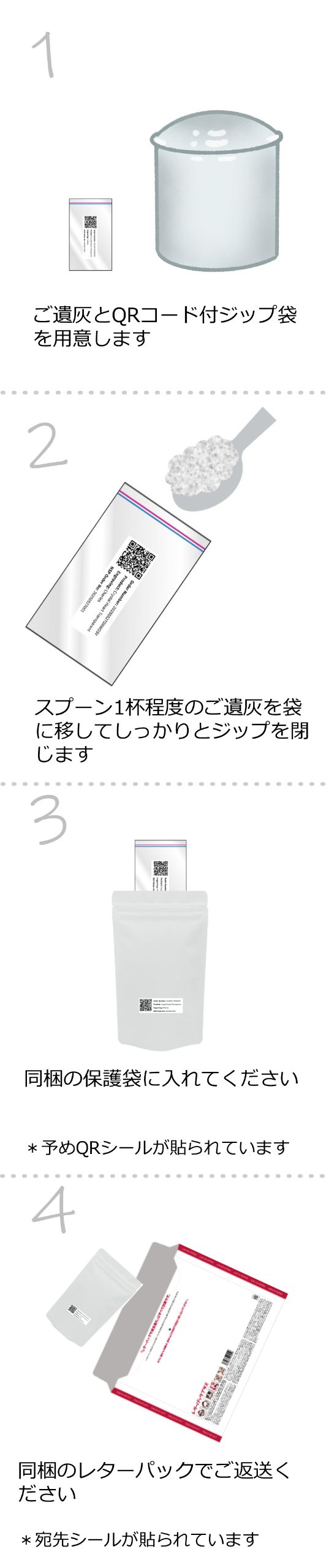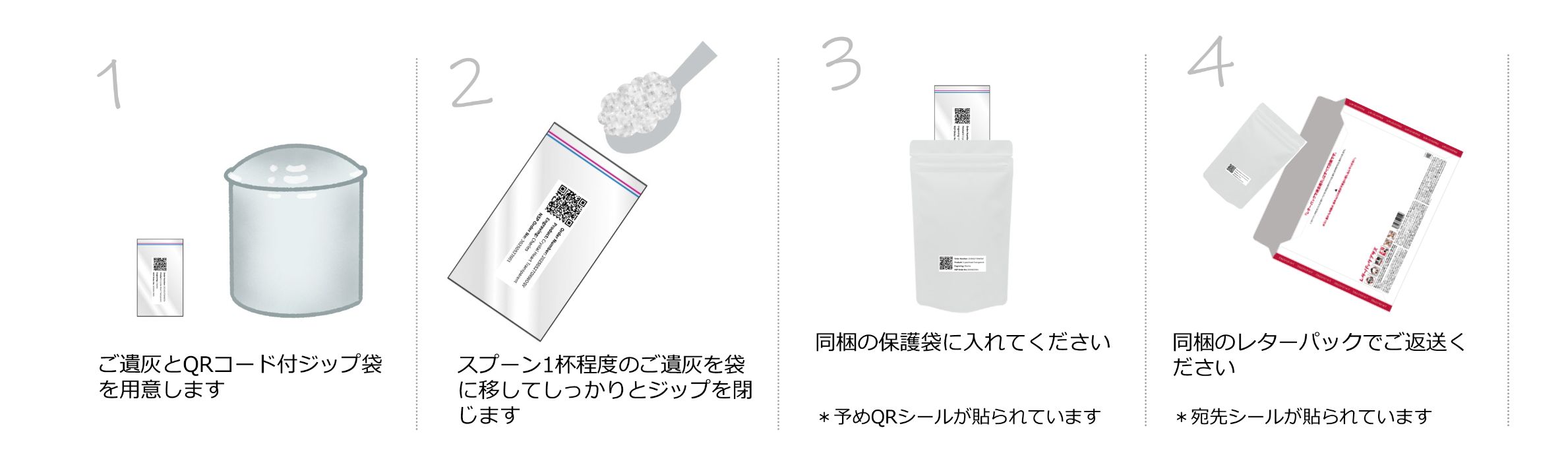 - ご遺灰はお客様ご自身でパッケージに移してご返送頂く必要があります。